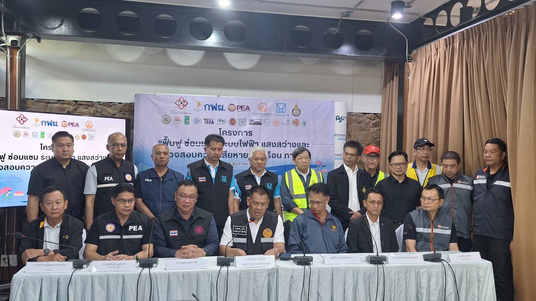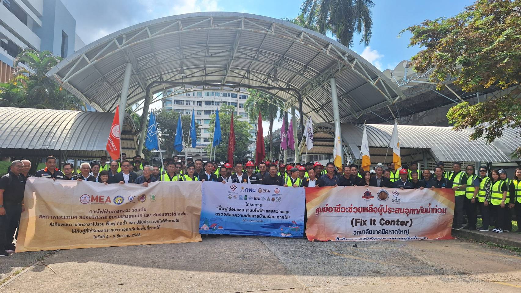 วันนี้ (5 ธ.ค. 68) #นายวิภู พิวัฒน์ รองผู้ว่าการผลิตไฟฟ้า และ #นายไชยยศ ตั้งวรกุลชัย ผู้ช่วยผู้ว่าการบริหารจัดการความยั่งยืน เป็นผู้แทนการไฟฟ้าฝ่ายผลิตแห่งประเทศไทย (กฟผ.) ร่วมกับมูลนิธินายช่างไทย ใจอาสา และภาคีเครือข่าย ปล่อยคารราวานทีมวิศวกรและช่างจิตอาสาภายใต้โครงการ “ฟื้นฟู ซ่อมแซมระบบไฟฟ้า แสงสว่าง และตรวจสอบความเสียหายบ้านเรือน ภาคใต้” ณ คณะวิศวกรรมศาสตร์ มหาวิทยาลัยสงขลานครินทร์ โดยมีทีมวิศวกรและช่างจิตอาสา กฟผ. จากฝ่ายปฏิบัติการภาคกลาง ฝ่ายปฏิบัติการภาคใต้ ฝ่ายจัดการด้านการใช้พลังงาน เขื่อนรัชชประภา เขื่อนบางลาง และโรงไฟฟ้าจะนะกว่า 40 คน ร่วมลงพื้นที่ฟื้นฟูระบบไฟฟ้าให้แก่ผู้ประสบอุทกภัยในชุมชนรอบโรงไฟฟ้าจะนะและบ้านเรือนใน อ.หาดใหญ่ จ.สงขลา ดำเนินการเปลี่ยนอุปกรณ์ไฟฟ้า อาทิ เบรกเกอร์ สวิตซ์ไฟ ปลั๊กไฟ และหลอดไฟฟ้า เพื่อปรับปรุงระบบไฟฟ้าให้กลับมาใช้งานได้อย่างปลอดภัย