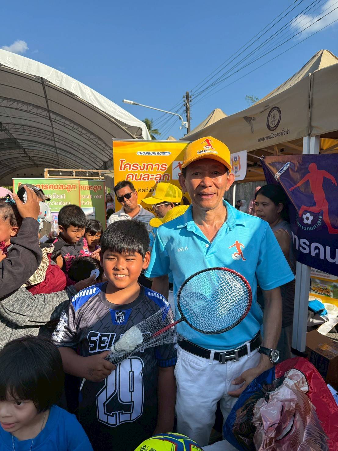 ศุภชัย ตัณฑสมบูรณ์ ประธานโครงการคนละลูก กล่าว ทางโครงการรู้สึกยินดีเป็นอย่างยิ่ง ที่ได้มีโอกาสเข้าร่วมกิจกรรมในงานวันเด็กแห่งชาติ หวังเป็นอย่างดีน้องๆจะได้รับความสุข ความสนุกสนานในวันเด็ก และต้องขอขอบคุณผู้สนับสนุนโครงการเป็นอย่างสูง คุณพงษ์ศักดิ์ ก้องไตรภพ กรรมการผู้จัดการ บริษัท เทพวรรณสปอร์ต กรุ๊ป จำกัด คุณวิทยา คุณปลื้ม ประธานสโมสรฟุตบอลชลบุรีเอฟซี ผศ.ดร.กิตติ เจริญพรพานิชกุล นายกสมาคมการค้าเครื่องกีฬา บริษัท แลนด์โก้ ฮักซ์ จำกัด คุณณัฐวุฒิ เรืองเวส นายกสมาคมกีฬาเทเบิลเทนนิสแห่งประเทศไทย คุณคำจันทร์ ซาวคำเขตต์ กรรมการผู้จัดการ บริษัท กีล่าสปอร์ต จำกัด คุณกฤษดา เจนพณิช กรรมการผู้จัดการ บริษัท ไทย.เจเพรส จำกัด บริษัท PN BALLOON จำกัด บริษัท ซี.อาร์ ทเวลฟ์ กรุ๊ป จำกัด บริษัท Allgether design จำกัด บริษัท WELLPREV จำกัด บริษัท AMITY LIGHT จำกัด บริษัท JBN Sport จำกัด บริษัท เอเคพี ฟุตแวร์ จำกัด ห้างหุ้นส่วนจำกัด นิวไทยที เบเกอรี่ สิทธิพง เมล่อน และสำนักสื่อมวลชนทุกสำนักที่เสนอข่าวเป็นอย่างดีเช่นเคย
